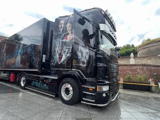 „Camionul este cu Vlad Țepeș din filmul Dracula, am făcut o temă românească pe oriunde mergi să reprezentăm țara de unde suntem. Oriunde m-am dus în Europa: Germania, Austria, Franța, Belgia, Olanda, direct poză”, a declarat Ovidiu Orădean, arădeanul care a cheltuit circa 60.000 € pentru a-și personaliza camionul, potrivit Alba24.ro.