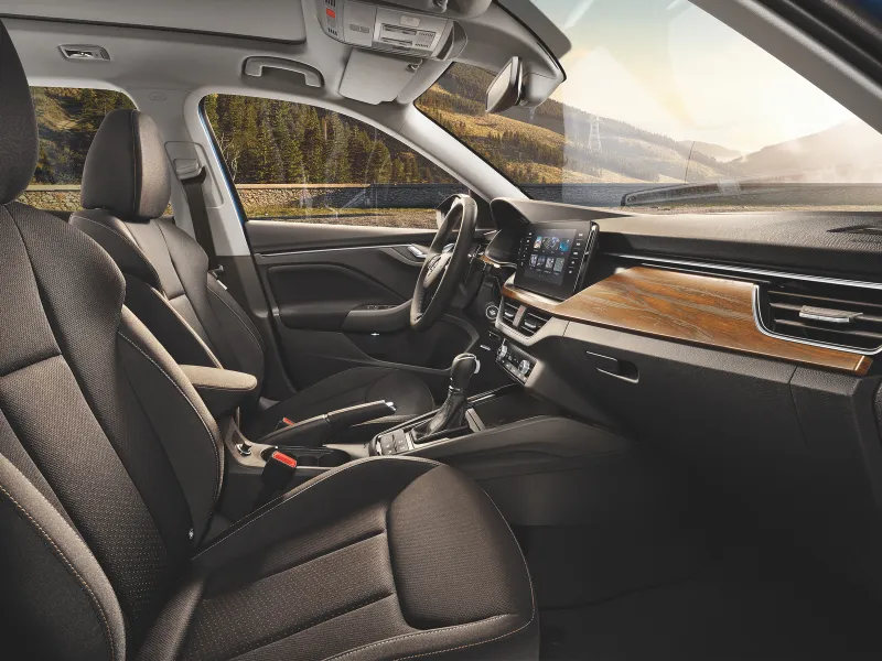 Interiorul lui Kamiq Scoutline dispune de elemente elemente decorative specifice, cu efect de lemn de frasin, ca dotare standard, sau, opțional, cu design negru texturat. Gurile de ventilație cromate și decorul cromat de pe bord completează designul rafinat al interiorului, alături de pedalierul cu aspect de aluminiu. Iar saunele sunt îmbrăcate cu o tapițerie Scoutline specială, realizată din material textil ThermoFlux și microfibră care imită pielea.