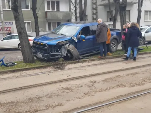 Un pick-up Ford F150 Raptor a fost făcut praf pe bulevardul Revoluţiei din 1989, chiar în faţa Palatului Administrativ din Timişoara. Soția președintelui CJ Caraş-Severin a pierdut controlul volanului.