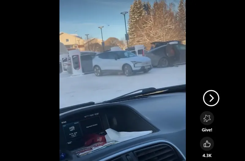 Un filmuleț postat pe rețelele de socializare, în care apare o coadă de kilometri buni de mașini la o stație de încărcare Tesla Supercharger din Malung, a devenit viral.