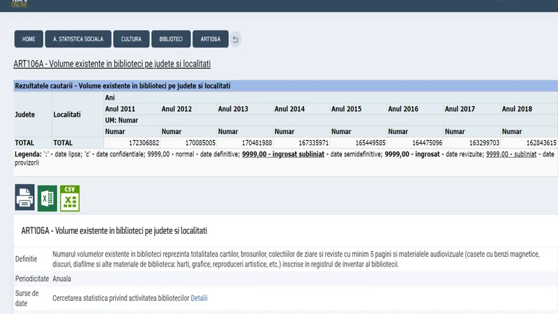 Potrivit INS, „numărul volumelor existente în biblioteci reprezintă totalitatea cărților, broșurilor, colecțiilor de ziare și reviste cu minim 5 pagini și materialele audiovizuale (casete cu benzi magnetice, discuri, diafilme și alte materiale de bibliotecă: hărți, grafice, reproduceri artistice, etc.) înscrise în registrul de inventar al bibliotecii”.