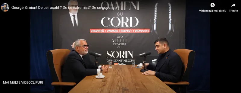 Într-un podcast “La o altfel de vorbă cu Sorin Constantinscu”, cu titlul “George Simion. De ce rusofil, de ce extremist, de ce populist?”, Constantinescu discută amical și pe aceeași lungime de undă cu președintele AUR.