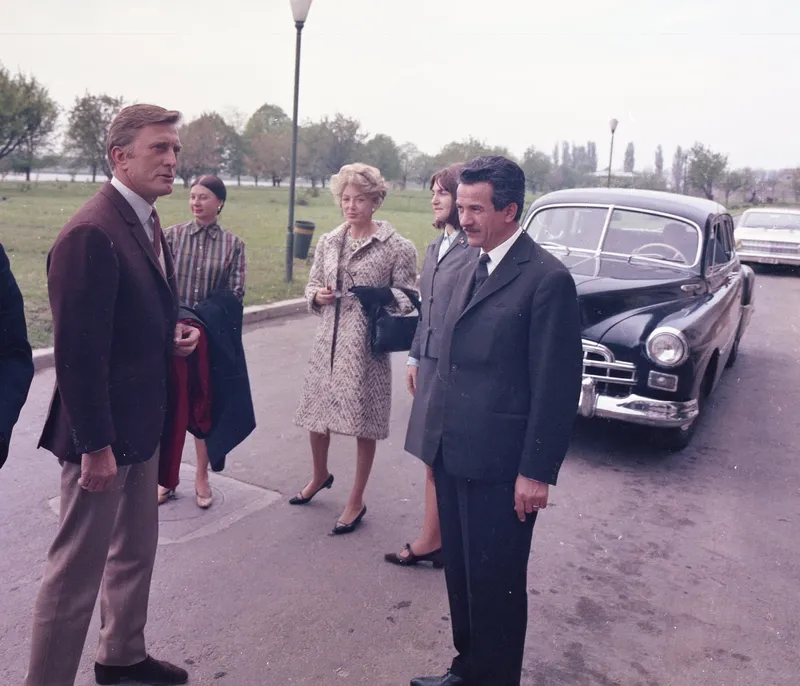 Kirk Douglas a venit la București să vadă în ce condiții poate să apară în pelicula „Dacii”, regizată de Sergiu Nicolaescu.