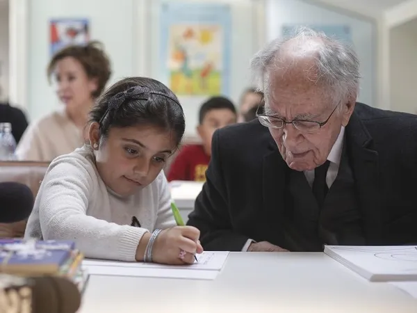 Mihai Șora, Medeea Marinescu și Ana Barton, colegi pentru copiii refugiați, la Ora de caligrafie