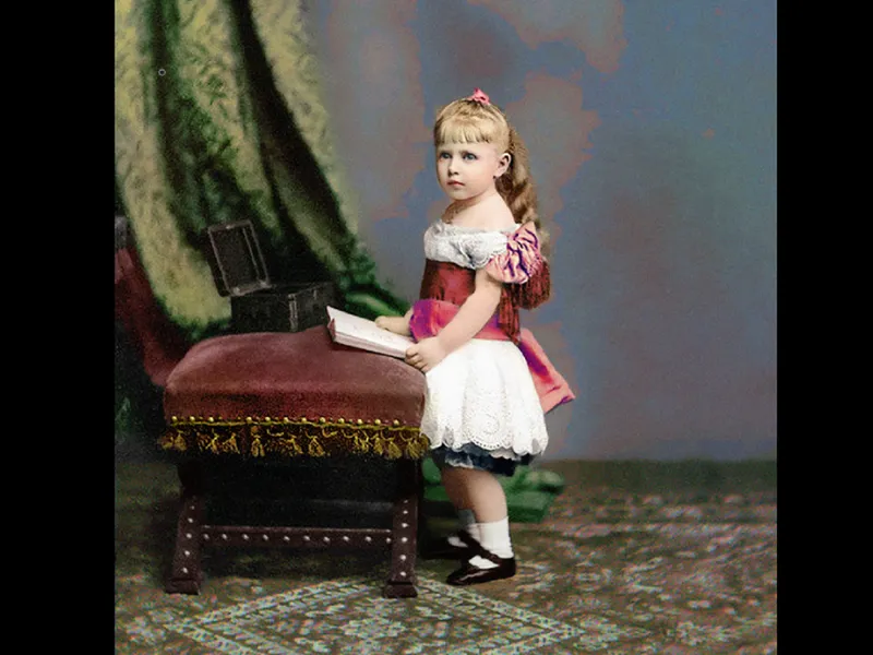 Regina Maria este surprinsă într-o poză din 1878. Avea doar 3 ani, ea fiind născută în anul 1875. A fost a doua regină a României, în calitate de soție a principelui devenit ulterior regele Ferdinand I al României. A fost mama regelui Carol al II-lea.