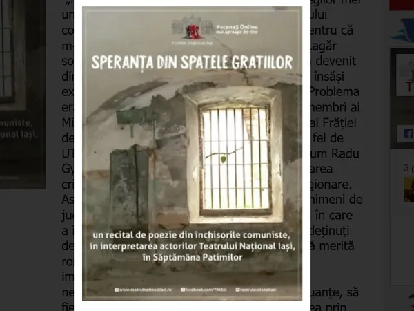 În Săptămâna Mare, actorii Teatrului Național „Vasile Alecsandri” din Iași recită din poeți legionari. Directorul instituției susține, într-un mesaj publicat pe site-ul instituției, că vrea să promoveze „salvarea prin poezie”.