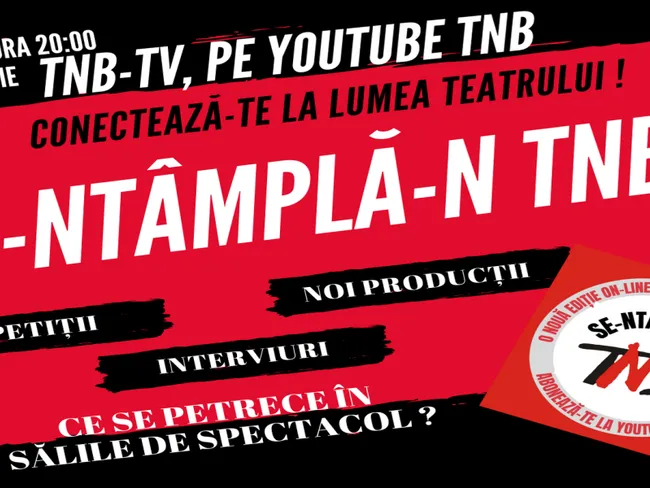 Prima televiziune din România dedicată exclusiv teatrului vă propune o nouă serie de emisiuni bilunare, sub titlul Se-ntâmplă-n TNB, emisiuni de tip magazin, ce vor prezenta reportaje, interviuri, portrete ale marilor actori ai Teatrului Național, amintiri despre mari spectacole, detalii despre cum se creează costumele de teatru în atelierele noastre, secvențe din backstage, declarații ale actorilor, dar și ale publicului spectator.