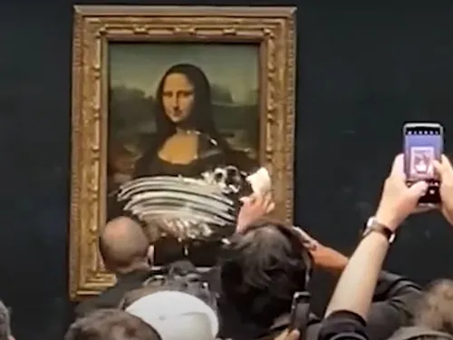 VIDEO Grav incident în Muzeul Luvru - Un vizitator a aruncat cu o tartă în tabloul „Gioconda”