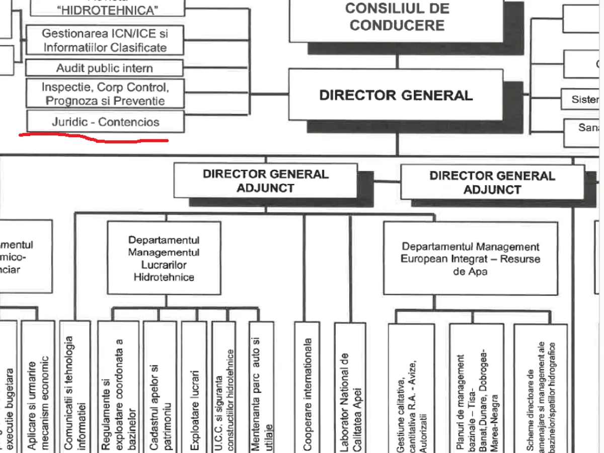 Deși plătește pentru servicii juridice, Apele Române are un departament de contencios-juridic. În 2017, a scos la concurs două posturi de consilier juridic. Detalii AICI.
