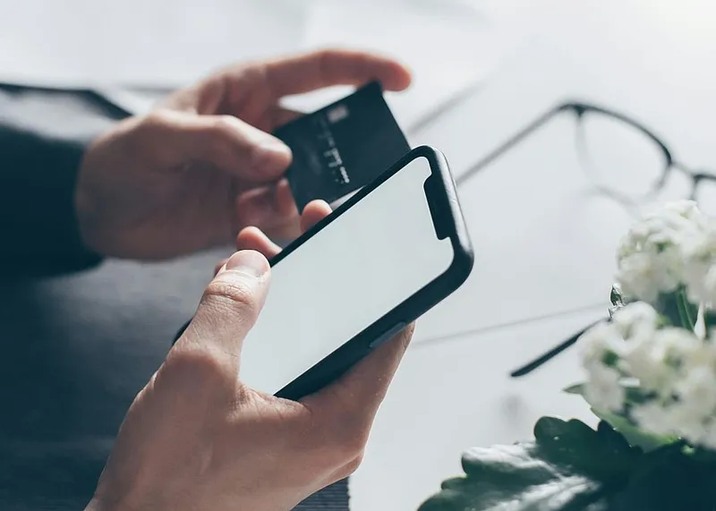 Bărbat legându-şi informatic cardul bancar de telefon - Foto: Pexels/Mikhail Nilov
