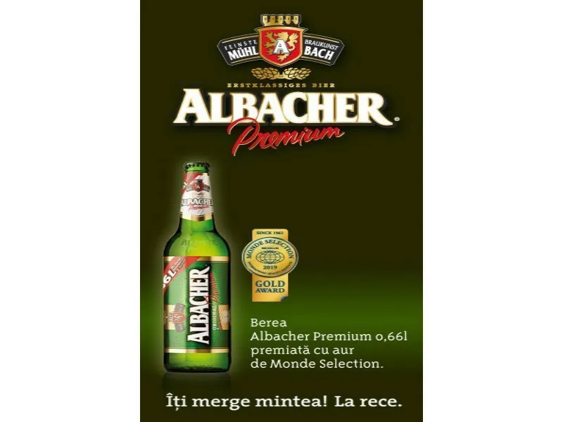 Produsul Albacher Premium 0,66l a primit distincția Gold Award în cadrul renumitei competiții internaționale World Selection 2019, organizată de Monde Selection Belgia.