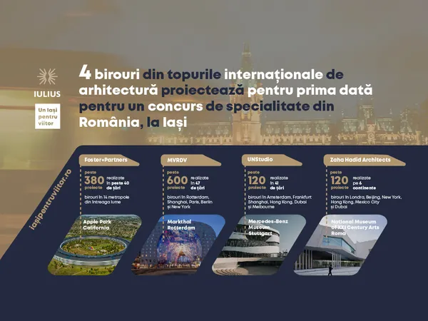 Patru birouri din topurile de arhitectură la nivel mondial participă la concursul de specialitate cu invitați, organizat de IULIUS, la Iași, cu scopul construirii unui reper arhitectural pentru oraș.