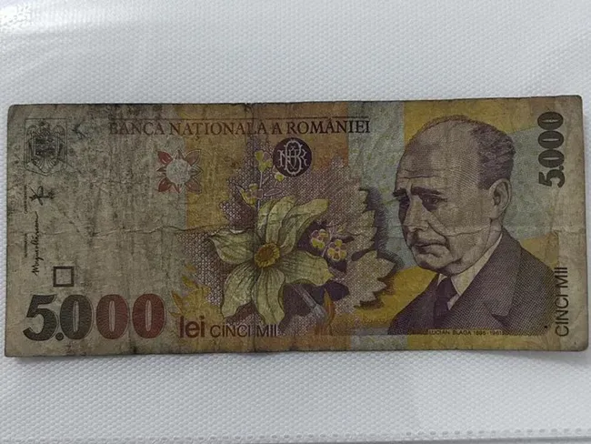Astfel, proprietarul a șase bancnote de 5.000 de lei, din 1998, cu chipul lui Blaga cere fabuloasa sumă de 80.000 de euro pentru a le înstrăina.