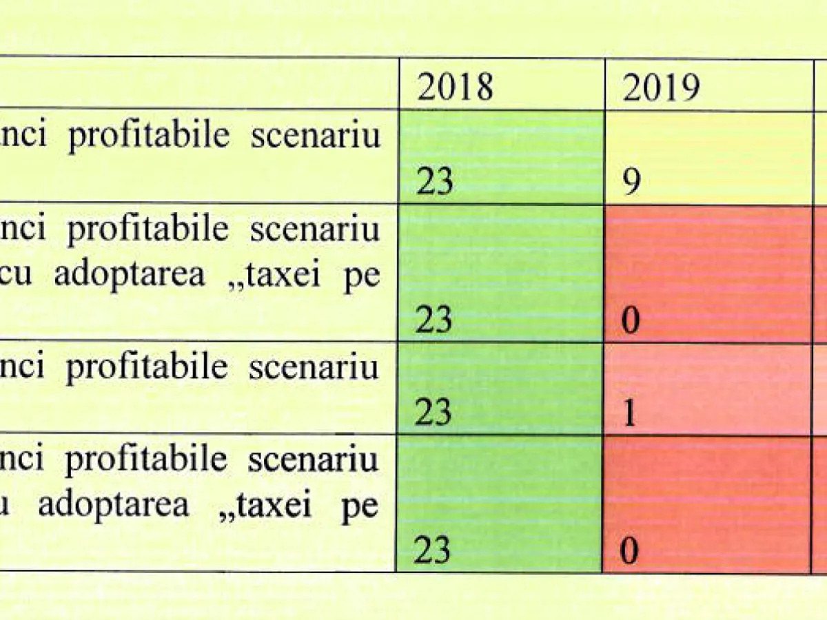 Florin Georgescu, prim-viceguvernatorul BNR, susține, într-un punct de vedere transmis Ministrului Finanțelor, că sectorul bancar românesc ar deveni neprofitabil începând cu anul 2019, cu o pierdere estimată la 680 milioane lei, și de aproximativ 3,4 miliarde lei, în 2020.