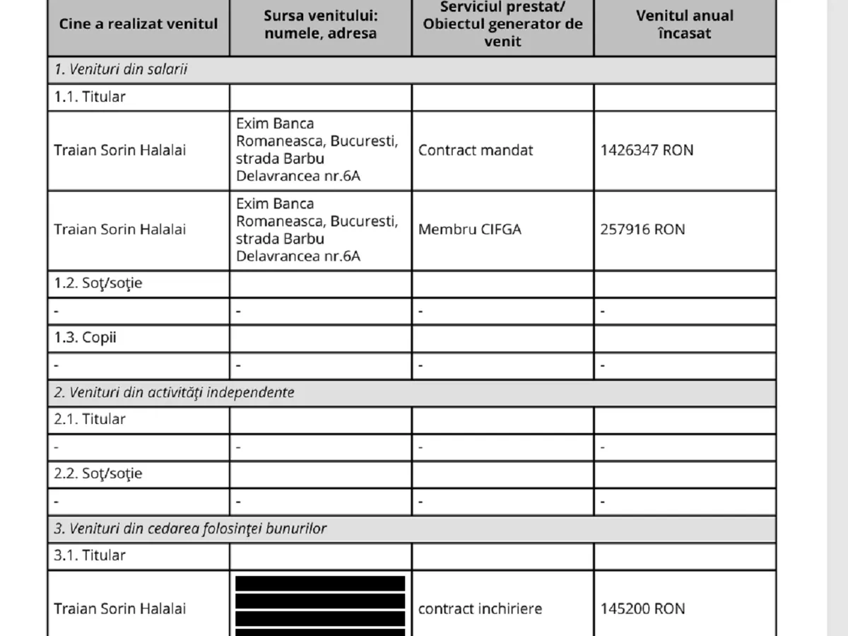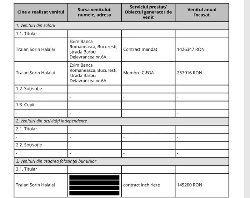 În total, Halalai primește de la Eximbank suma de 1,7 milioane de lei, adică 140.000 lei pe lună net. Venitul lui Halalai este de 28.000 de euro.
