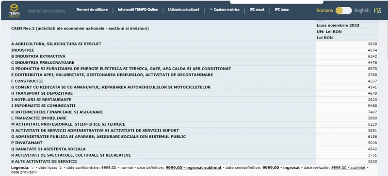 Iată și care sunt domeniile în care media salariilor este sub 5000 de lei, conform INS: