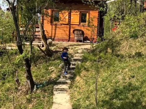Cum arată proprietatea de la marginea pădurii pe care se află două cabane alimentate de la panouri fotovoltaice