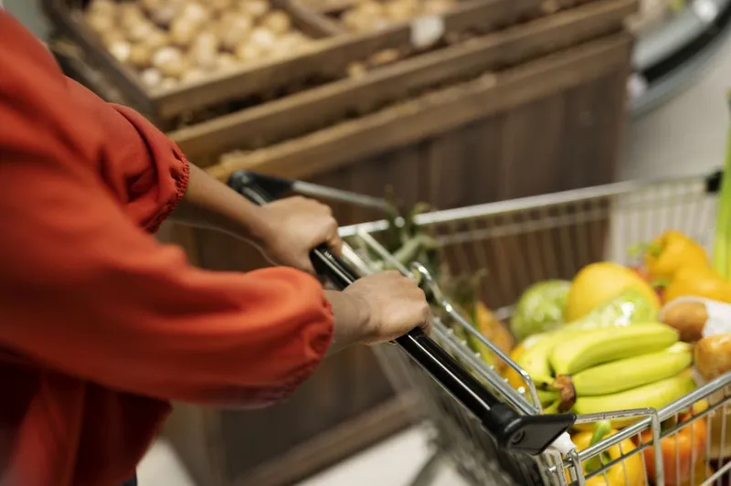 Femeie împingând în magazin coşul de cumpărături - Foto: Freepik/CC0