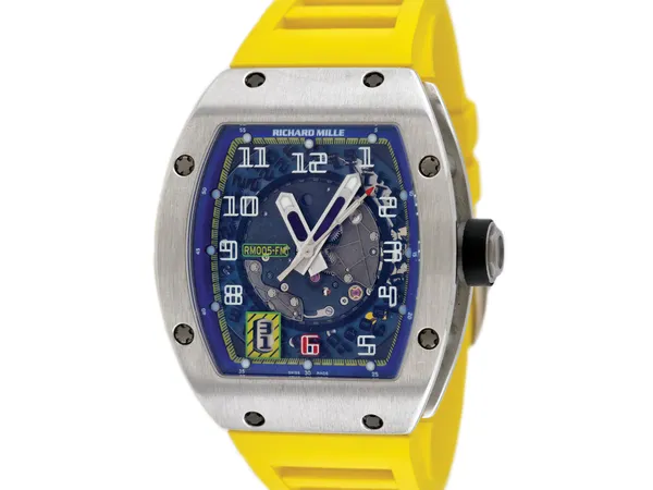 Lansat în 2004, ceasul RM-005 „Felipe Massa” AG TI din platină a fost realizat într-o ediție limitată de 40 de piese, iar modelul prezent în licitație este numerotat 3 și are un preț de pornire de 57.000 de euro, raportat la o valoare cu care circulă în piață ce poate fi cuprinsă între 100 și 200.000 de euro. Ceasul vine însoțit de actele de proveniență și de cutia originală.
