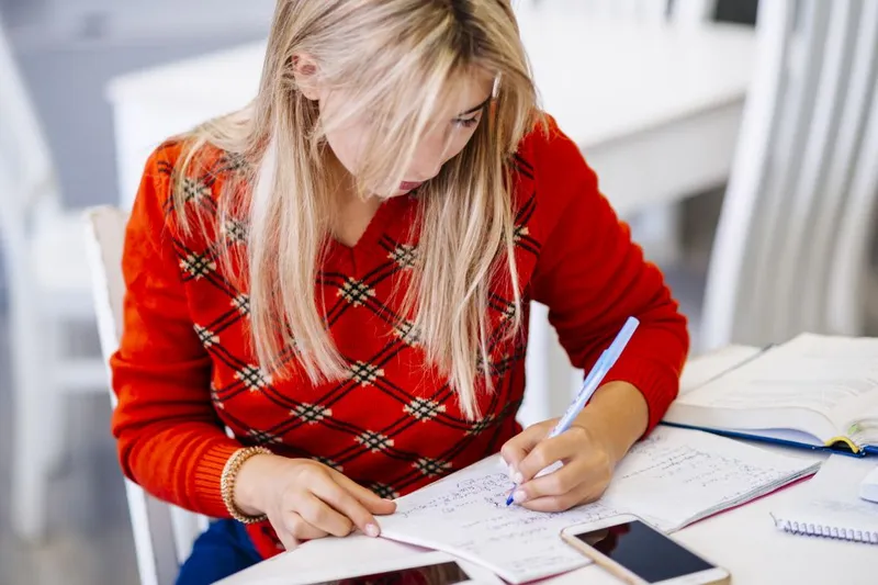 Femeie scriind în notebook, pe birou - Foto: Freepik/CC0