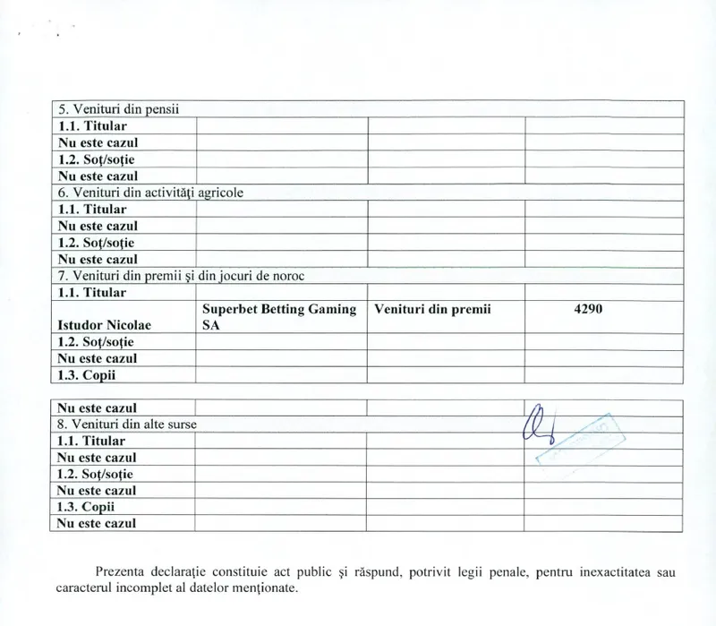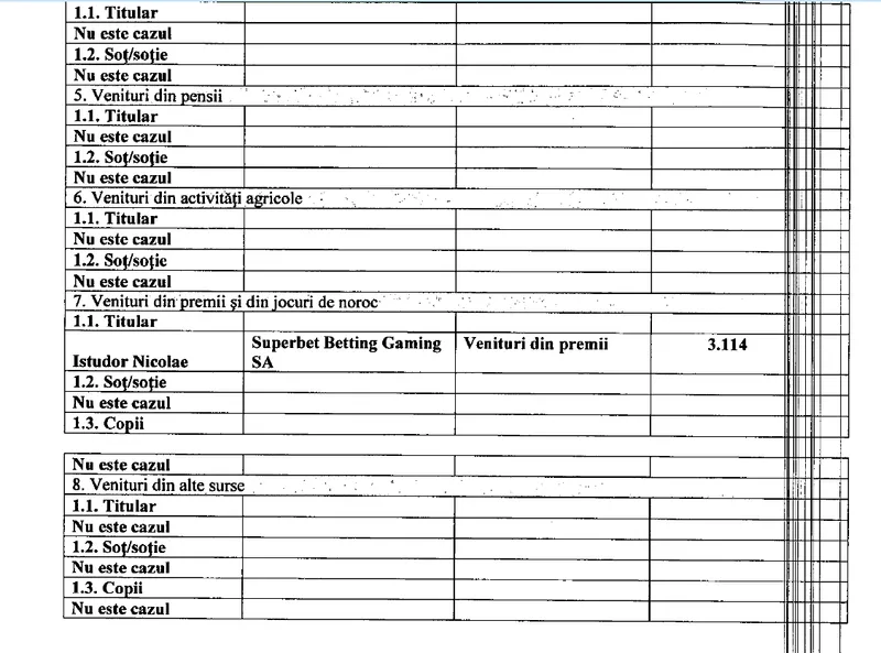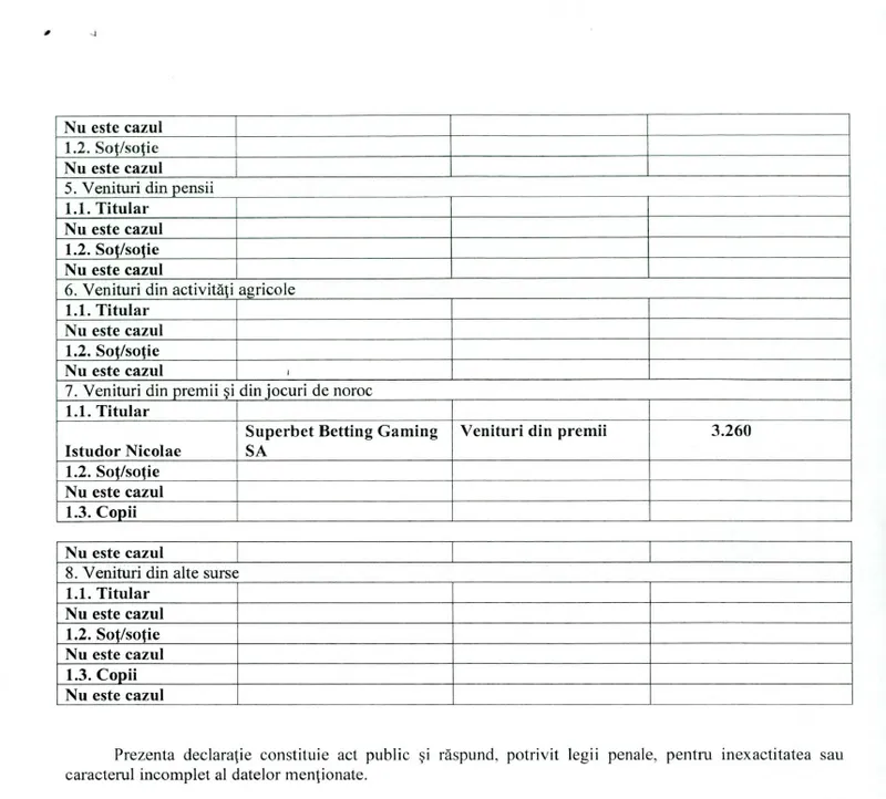 Altceva atrage însă atenția la declarațiile de avere ale rectorului Nicolae Istudor: trei ani la rând a declarat că a obținut venituri din jocuri de noroc.