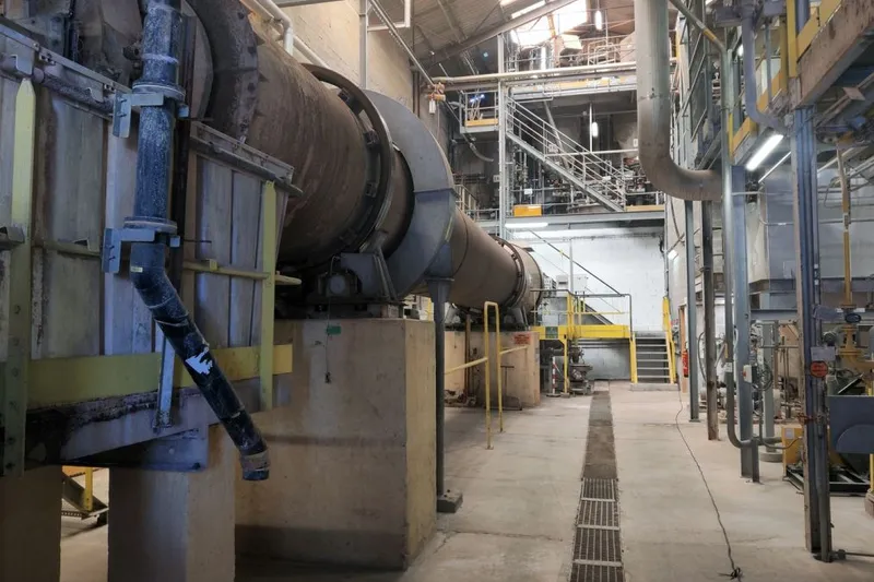 Camera în sine are aproximativ dimensiunea unui teren de fotbal și găzduiește rânduri întregi de cuve metalice uriașe, în care reacțiile chimice separă diferitele pământuri rare.