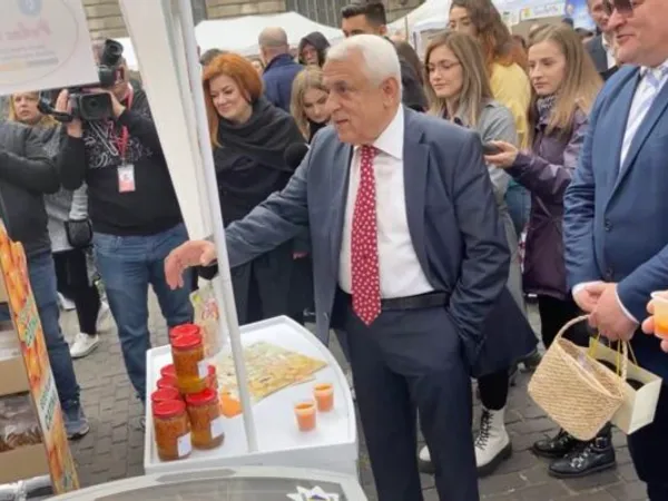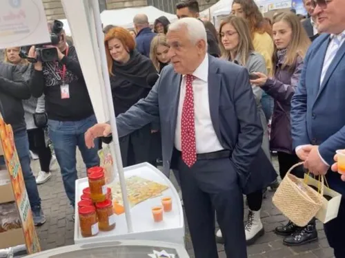 El a făcut un tur al târgului, a cumpărat produse de la standurile producătorilor, a băut must şi a dat flori jurnalistelor prezente la eveniment.