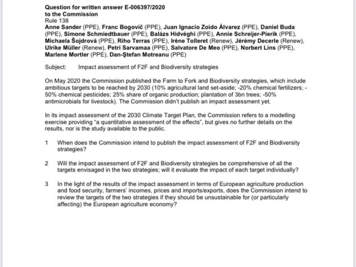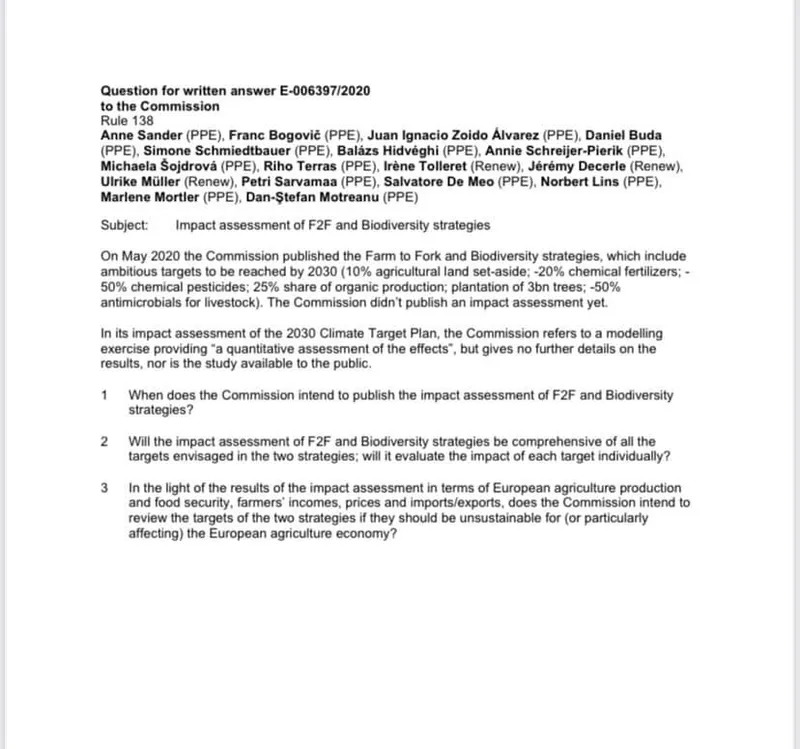 "În luna mai, Comisia a publicat Strategia De la fermă, la consumator și Strategia privind biodiversitateaa cu obiective ambițioase pentru 2030, fără să facă publică însă și o evaluare a impactului acestora. Cele două Strategii prevăd ca: