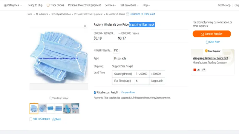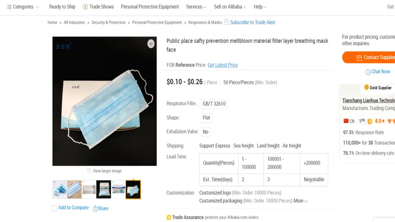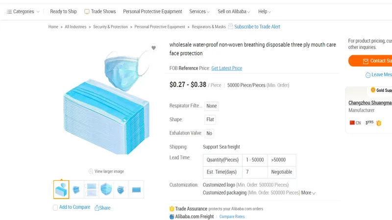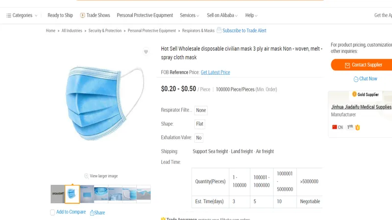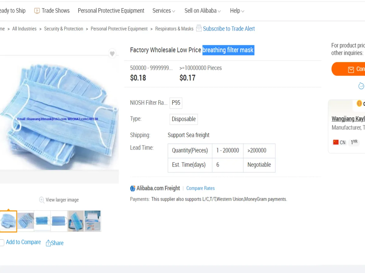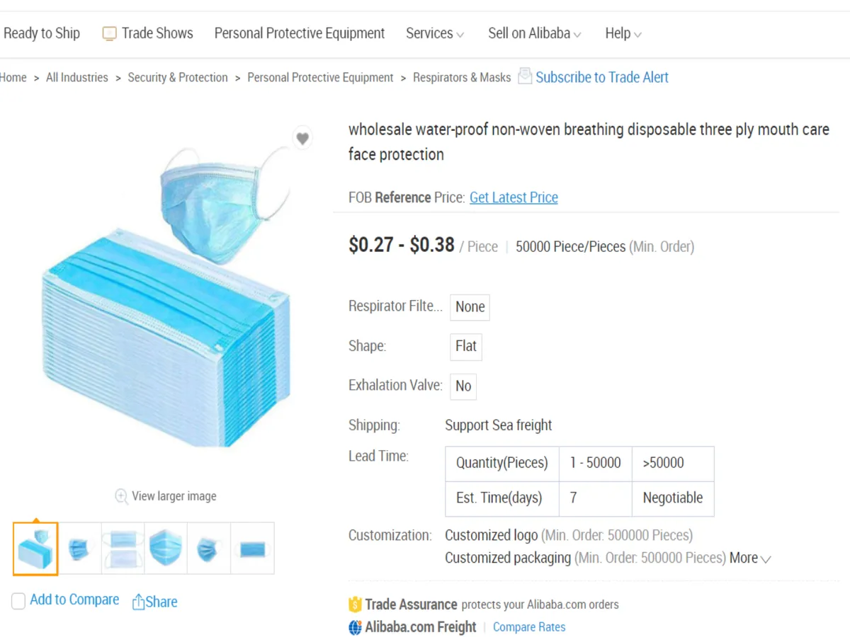 Potrivit site-ului alibaba.com, o mască chirurgicală era vândută, la final de februarie, cu un preț între 0,008$ și 0,012$ în funcție de cantitate. Site-ul alibaba.com este chinez”.