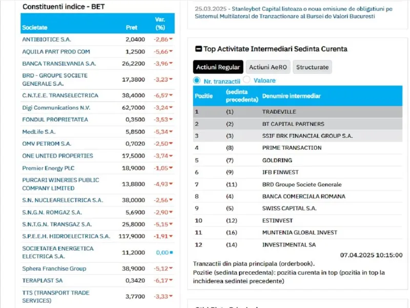 Dezastru pe Bursa de la Bucureşti. E pe roșu. BRD -3%, Petrom -2,5%, Transgaz - 5%. Trump, vinovat