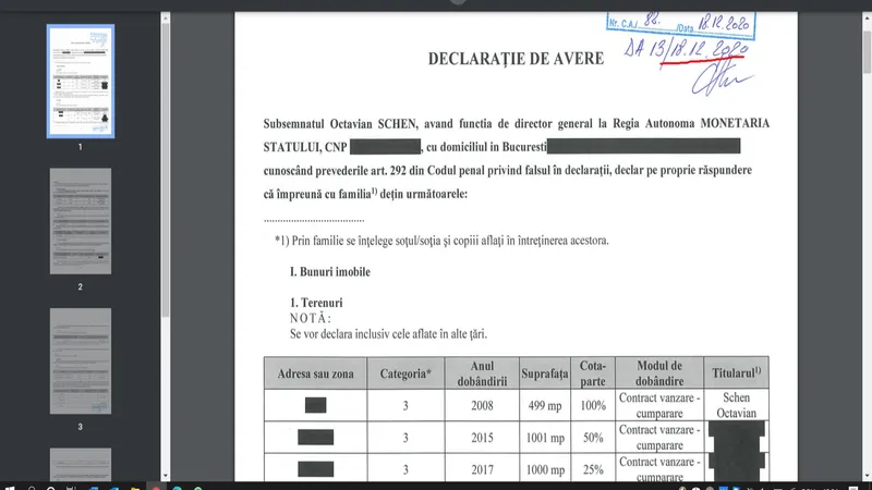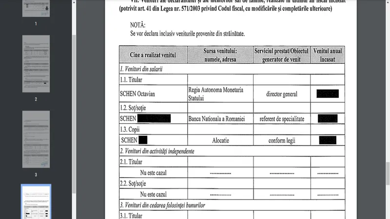 În schimb, la rubrica aferentă publicării declarațiilor de avere de pe www.monetariastatului.ro, Declarația de avere a lui Octavian Schen rămâne, în continuare, secretizată după cum se vede în facsimilul mai jos.