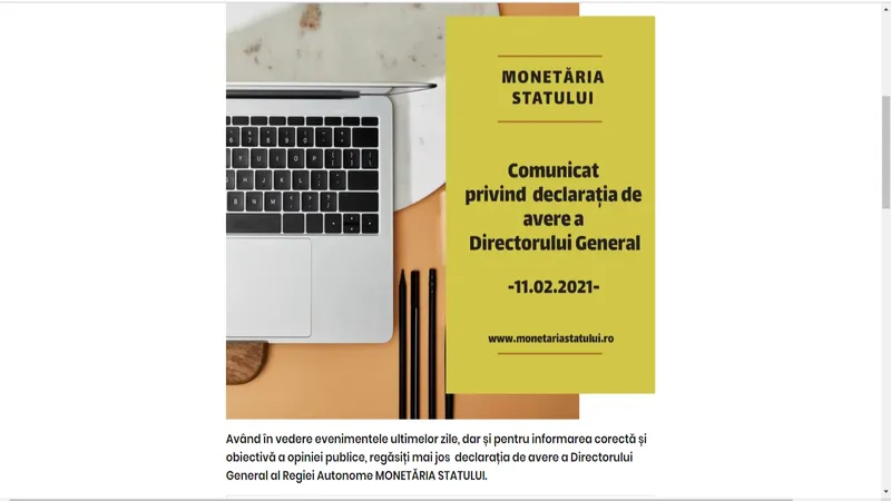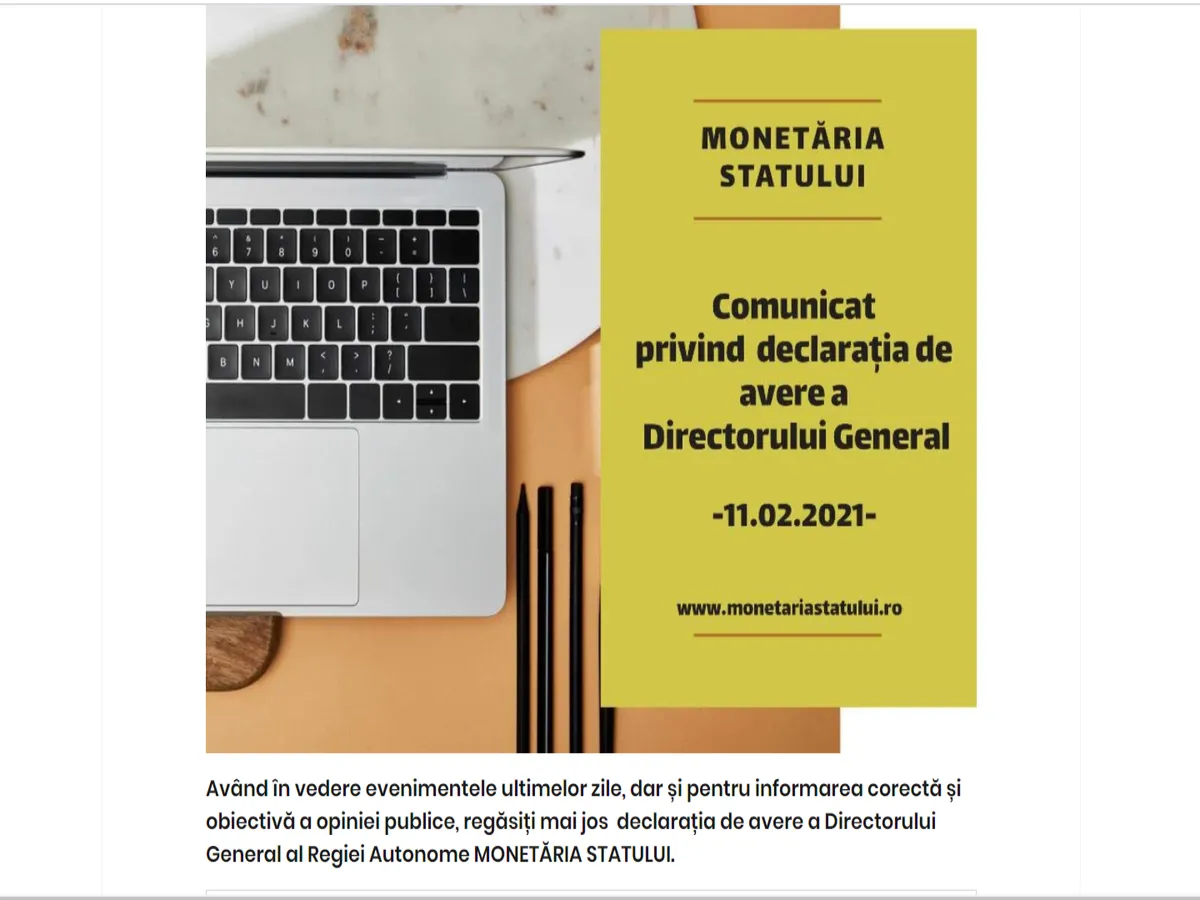 O zi mai târziu, pe 11 februarie, Monetăria Statului a dat un comunicat de presă în care ceartă jurnaliștii că nu informează obiectiv: „Având în vedere evenimentele ultimelor zile, dar și pentru informarea corectă și obiectivă a opiniei publice, regăsiți mai jos declarația de avere a Directorului General al Regiei Autonome MONETĂRIA STATULUI”.