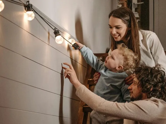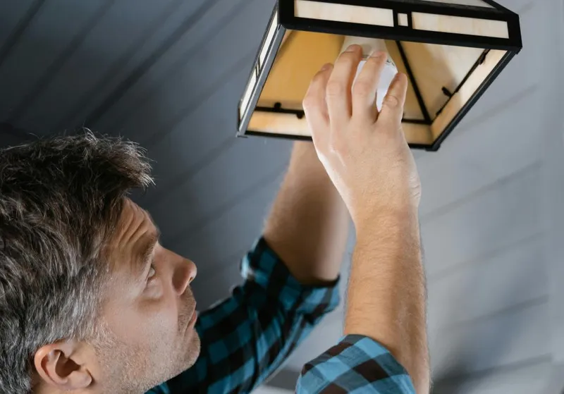 Bărbat punând un bec într-o lustră - Foto: Pexels/MART PRODUCTION