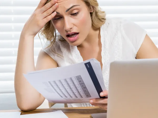Femeie uitându-se la calcule cu consternare. Ce arată acestea? - Foto: Freepik/stockking
