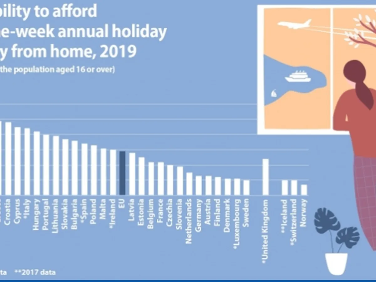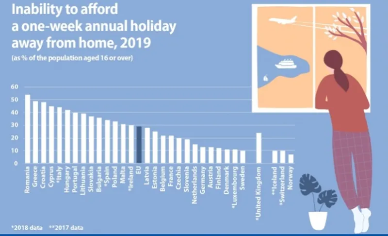Anul trecut, 29% din rezidenții statelor membre ale Uniunii Europene de peste 16 ani nu și-au permis să plătească pentru o vacanță anuală departe de casă, ppotrivit Eurostat, citat de TVR.