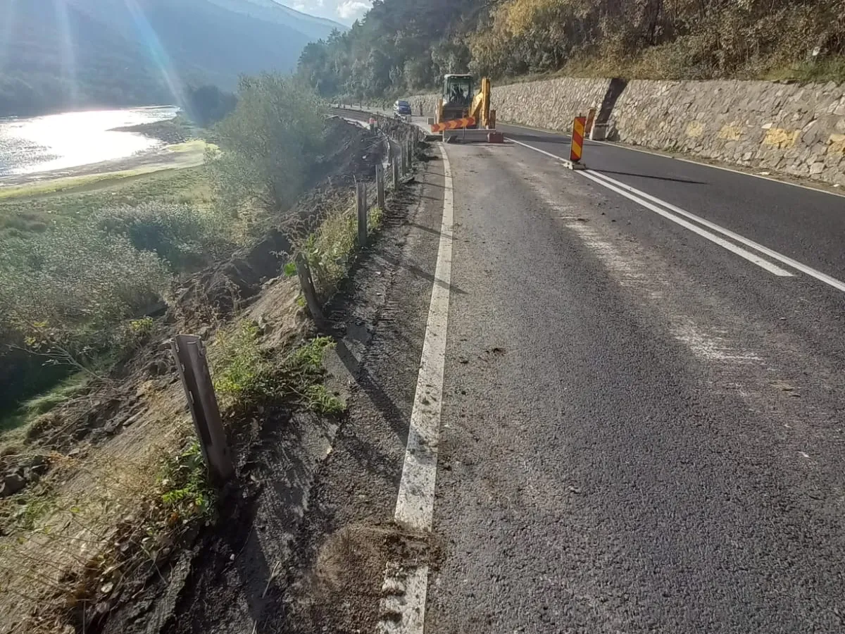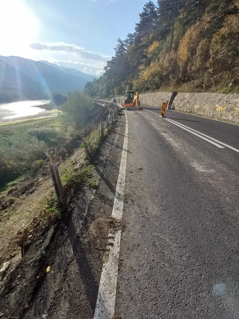 Lucrări de consolidare a sectorului #DN7 din apropierea localității Boița executate astăzi, 14 octombrie: