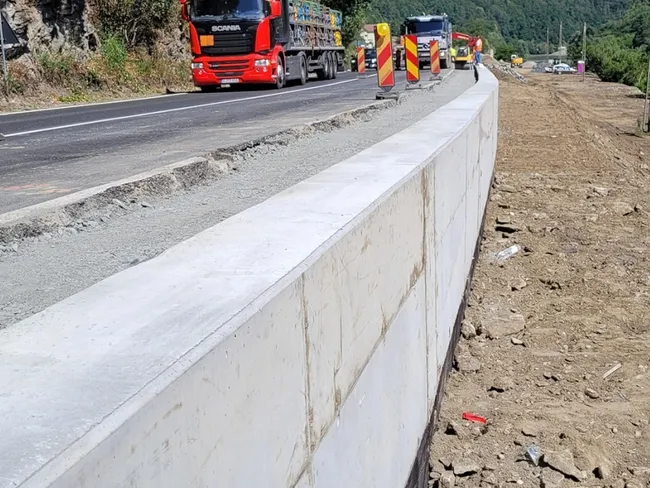 CNAIR a anunțat că lucrarea care are ca obiectiv consolidarea drumului și pregătirea pentru conexiunea cu tronsonul 1 al Autostrăzii Sibiu - Pitești nu va fi gata până la iarnă. În acest moment, lipsește doar ca o porțiune de jumătate de metru de carosabil să plece la vale pentru ca șoseaua să devină impracticabilă.