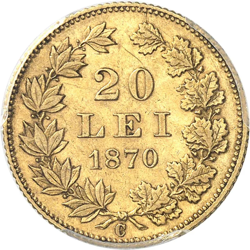 Moneda de 20 de lei pe pe vremea lui Carol are un preț de plecare la licitație de 1.800 de euro.