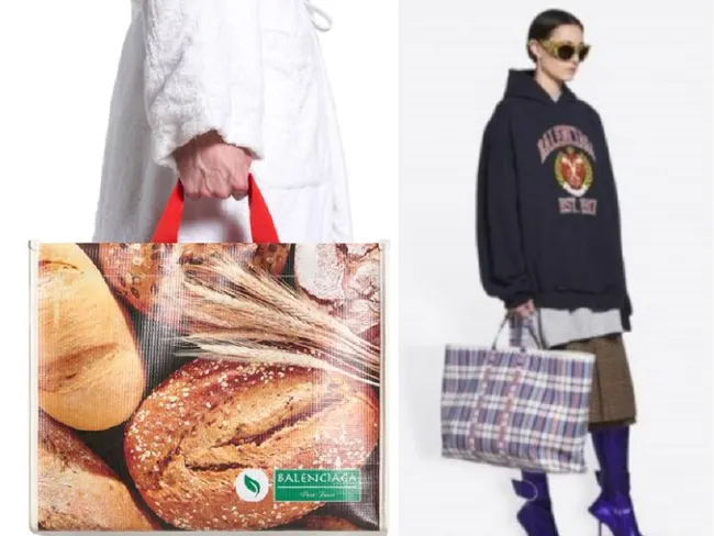 În anul 2021, Balenciaga a scos la vânzare o geantă care costă aproape 1.600 de euro şi care seamănă izbitor cu o sacoşă de rafie. Era însă realizată din piele de vițe, avea două buzunare în interior și avea imprimat logo-ul celebrului brand.