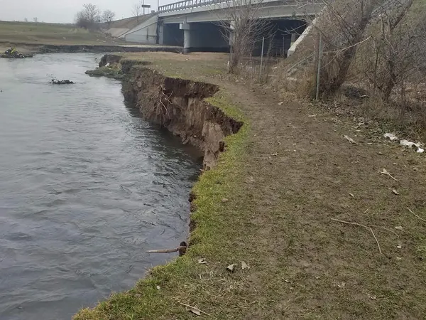 Zona erodată de râul Orăștie se află după gardul de protecție al autostrăzii A1.
