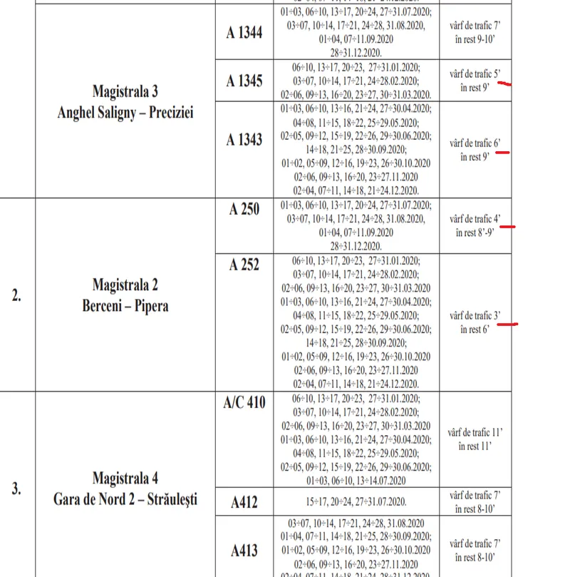 Pe unele magistrale, între sosirea trenurilor de metrou, ar trebui să treacă doar 3 minute. Este vorba de Berceni - Pipera.