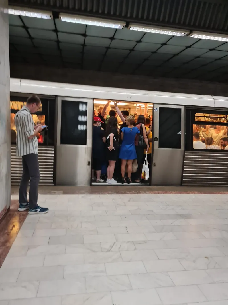 Asta nu mai e metrou, e o gluma sinistra. 11 minute pe ecran plus alte trei minute de cand a plecat precedentul tren (se vede in fundal, pe afisaj) = interval de succedare de 14 minute pe M1, a scris cineva pe FB.