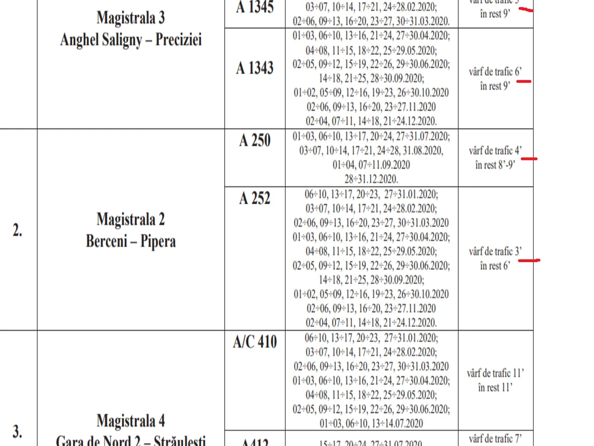 Pe Eroilor - Romancierilor, trenurile trebuie să vină la 6 minute, iar pe Anghel Saligny - Preciziei tot la 6 minute.
