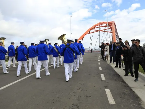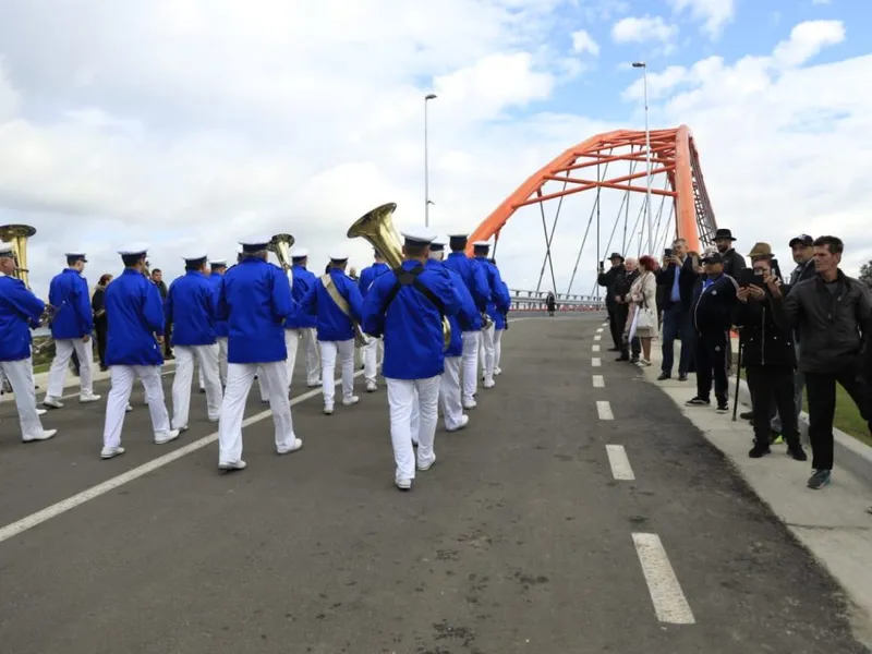 FOTO Podul peste Someș de la Ulmeni, inaugurat după 7 ani, cu fanfară, pâine și sare și politicieni