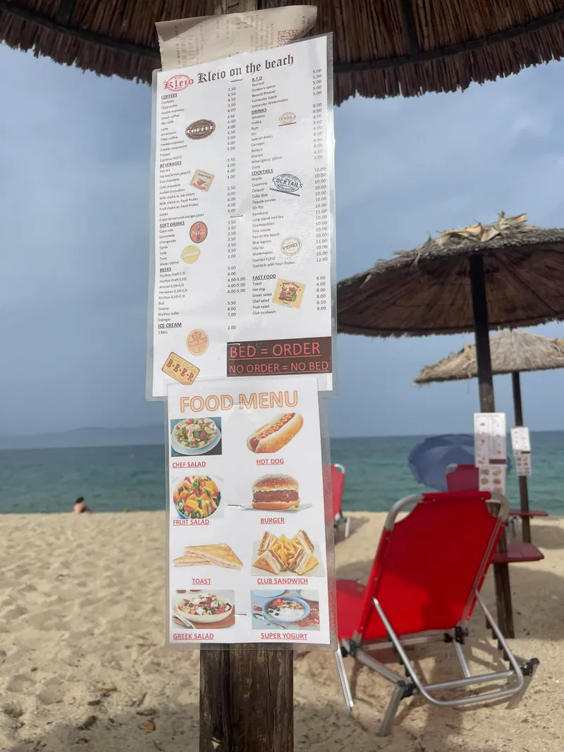Dacă pleci în vacanță în Halkidiki și vrei să estimezi bugetul zilnic, e bine să știi că pe plajă prețurile sunt aproape ca anul trecut. O bere de 0,5 l costă 5 €, de exemplu, iar o cola, 3,5 €. În general, șezlongurile sunt gratis, trebuie doar să faci consumație.