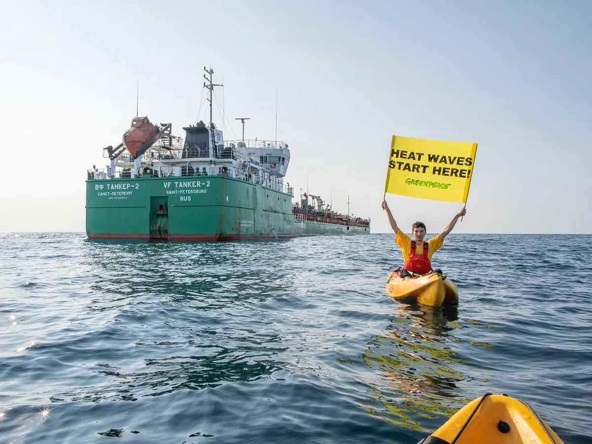 FOTO&VIDEO Protest pe mare al activiștilor de mediu în fața unui petrolier rusesc
