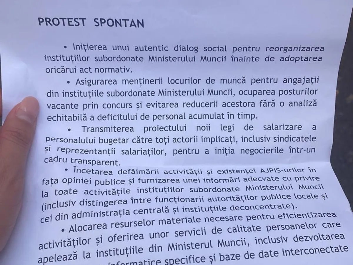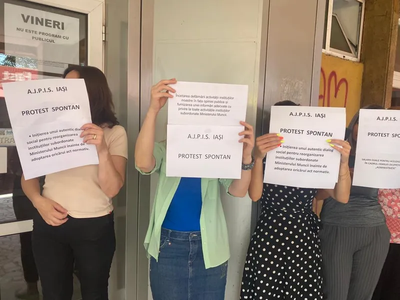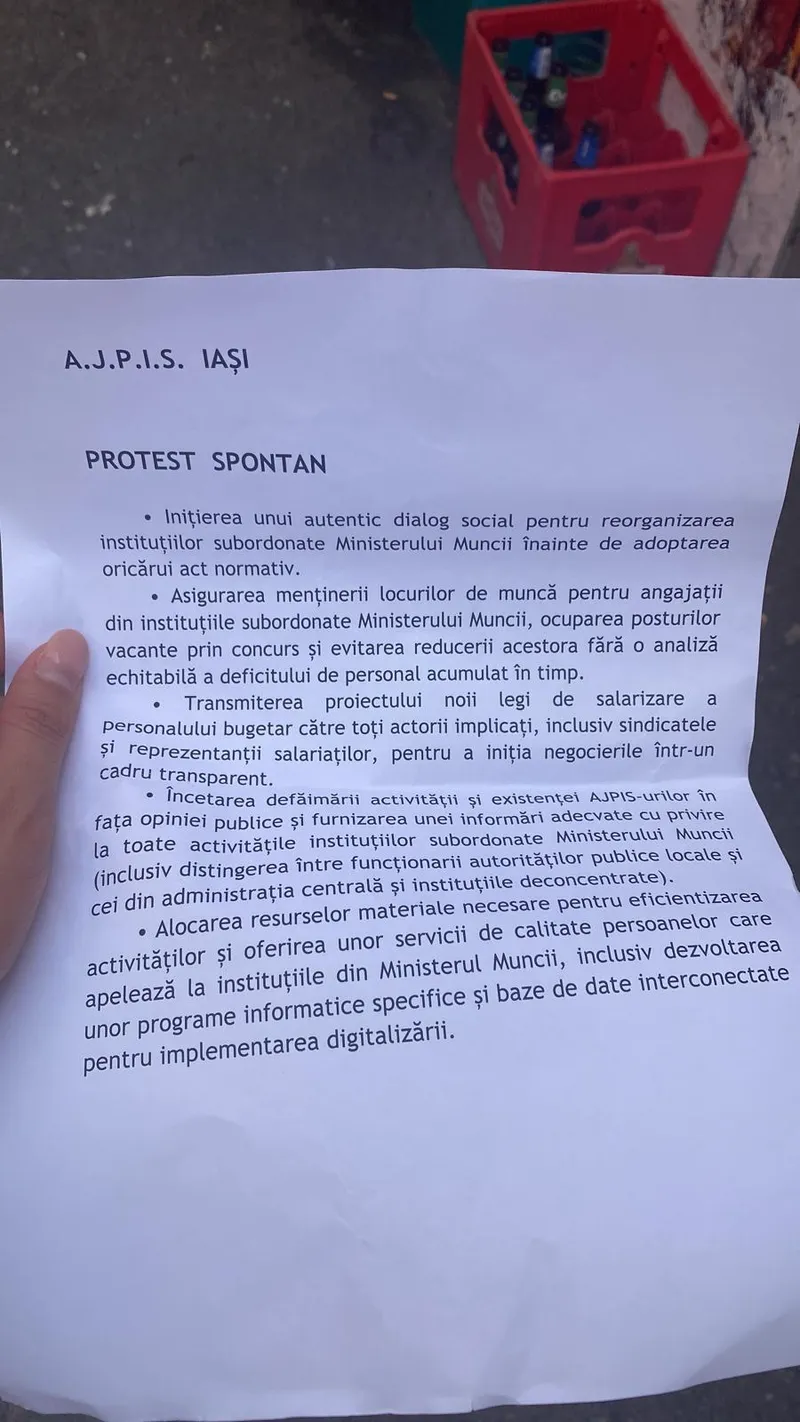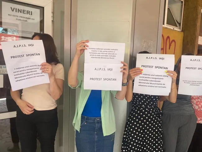Grevă spontană declanșată de Agenția Județeană pentru Plăți și Inspecție Socială din județul Iași, unde angajații se tem că își vor pierde locurile de muncă și că proiectul noii legi a salarizării i-ar putea afecta negativ.
