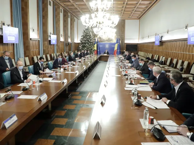 "Avem astăzi pe agenda şedinţei de Guvern două proiecte importante care fac parte din pachetul legislativ ce va sta la fundamentarea bugetului pe anul 2022. În şedinţa precedentă am adoptat şi aprobat măsurile sociale pentru creşterea alocaţiilor, pensiilor şi indemnizaţiilor pentru persoanele cu dizabilităţi. Astăzi avem pe masa de lucru ordonanţa de urgenţă privind principalele măsuri bugetare şi proiectul de lege privind plafoanele de cheltuieli", a precizat Ciucă, la începutul şedinţei Executivului.
