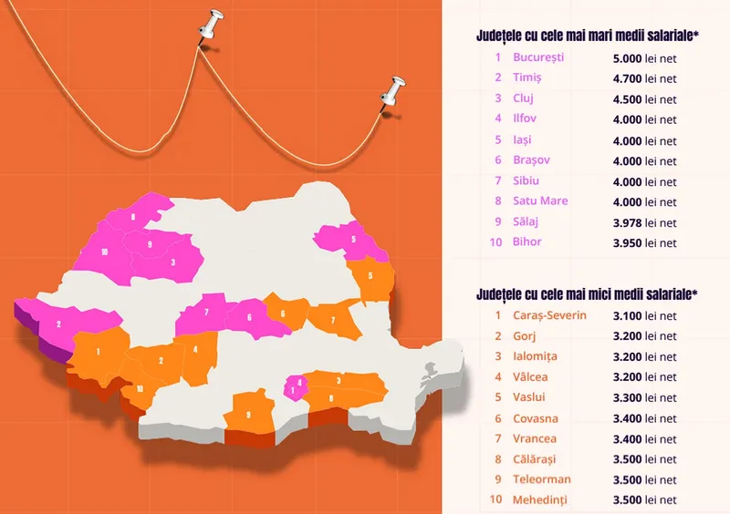 Harta salariilor în România: 50% din români iau 2.000-4000 lei. Unde se câștigă mai bine, unde prost