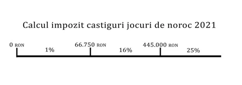 ○ De exemplu, dacă ai câștigat 70.000 RON, va fi percepută o taxa de 667,5 RON plus 16% din 3.250 (70.000 - 66.750).